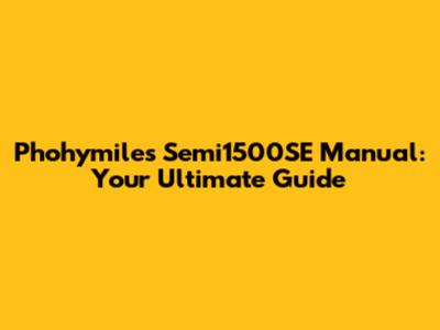 Phohymiles Semi1500SE Manual: Your Ultimate Guide