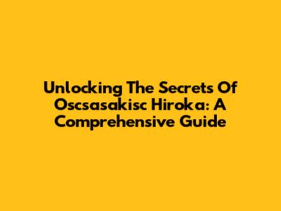 Unlocking The Secrets Of Oscsasakisc Hiroka: A Comprehensive Guide