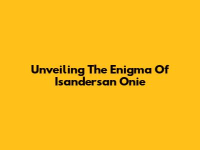 Unveiling The Enigma Of Isandersan Onie